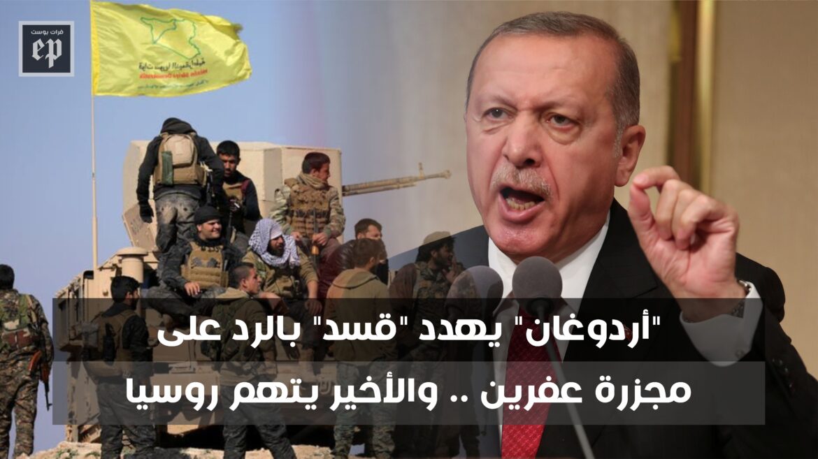 وفي سياق متصل، اتهم “مظلوم عبدي” قائد “قسد” روسيا بارتكاب المجزرة التي وقعت في مدينة “عفرين” بريف حلب الشمالي.