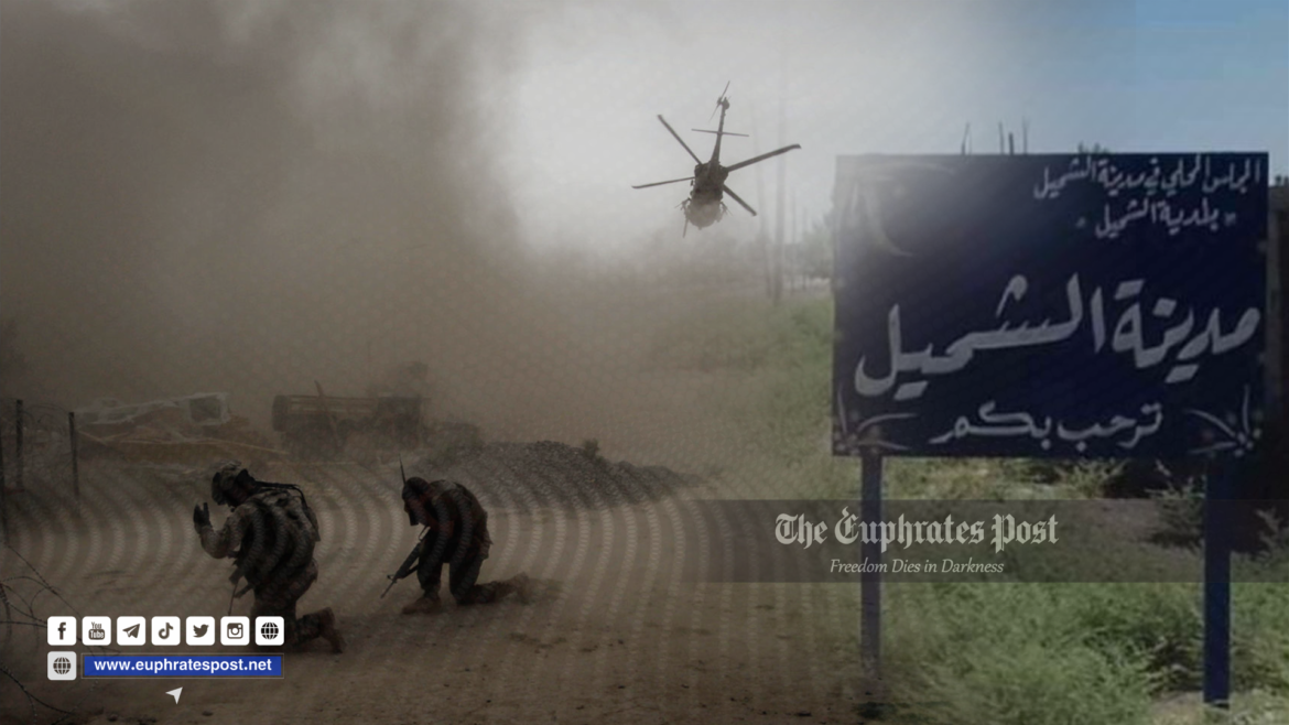 نفذت “قسد” بمساندة طيران التحالف المروحي اليوم الثلاثاء عملية إنزال جوي في مدينة الشحيل بريف دير الزور الشرقي، استهدفت منزلاً يقطنه نازحون من بلدة بقرص يقع قرب معمل السجاد في المدينة، تزمناً مع قيام القوات بتعطيل أبراج “الإنترنت” في مكان العملية.