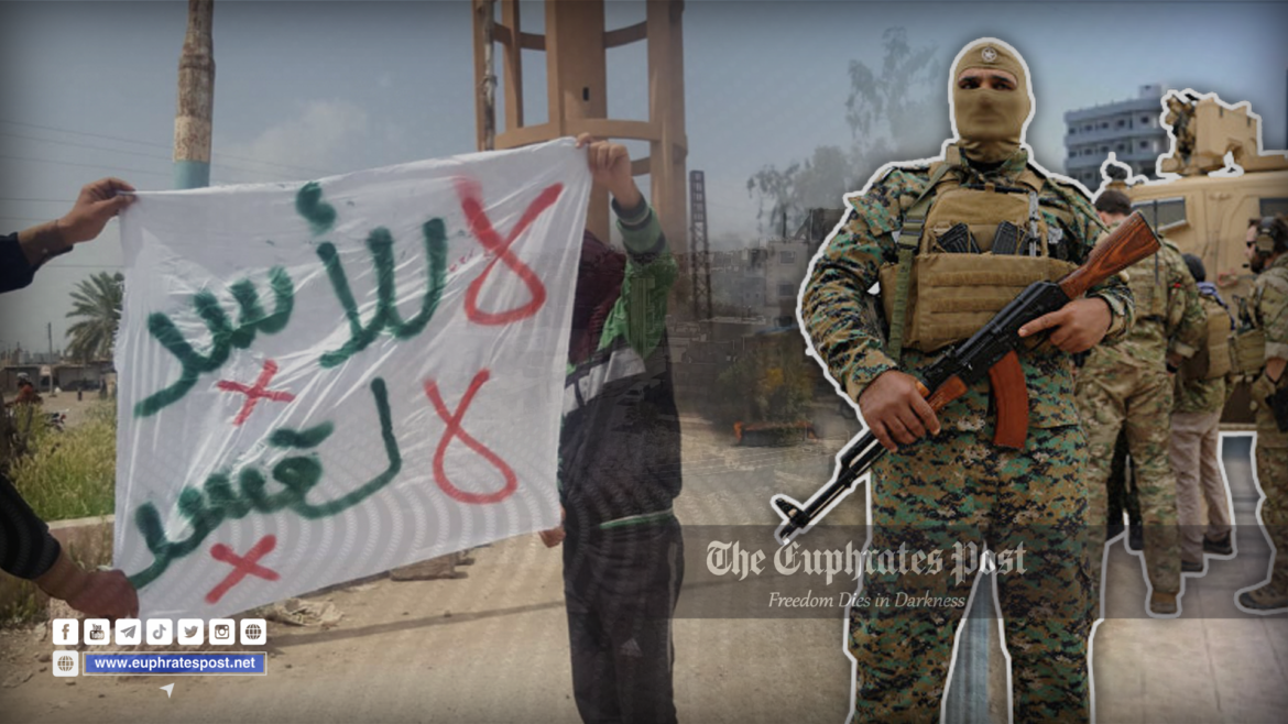 المظاهرات جاءت بعد مداهمة قوة من قسد منزل أحمد الحواس صاحب معبار الجسر النهري وذلك بعد رفض الأخير سداد ماعليه من مبالغ مالية للنقطة النهرية التابعة لقسد مقابل سماحها له بعمل المعبار.