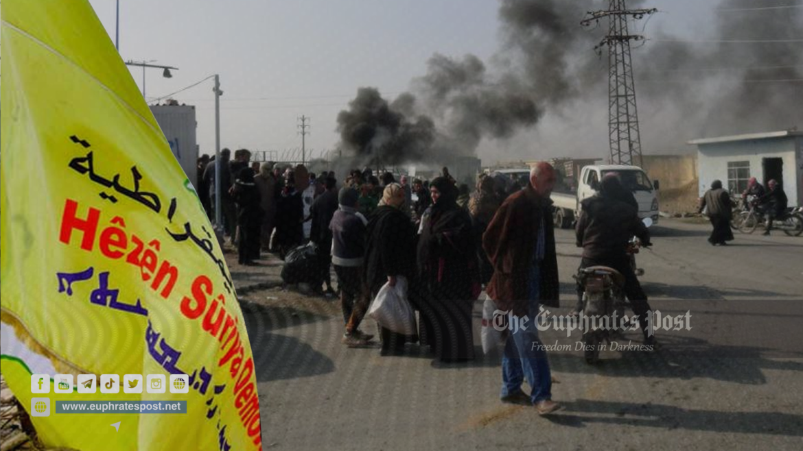 مصادر محلية قالت: إن سكان بلدة الشنان قطعوا الطريق الرئيسي في البلدة بواسطة الإطارات المشتعلة، فيما طالب المحتجون “قسد” بوضع حد لتجاوزات القيادي أحمد العبيد النجرس المنحدر من قرية درنج.
