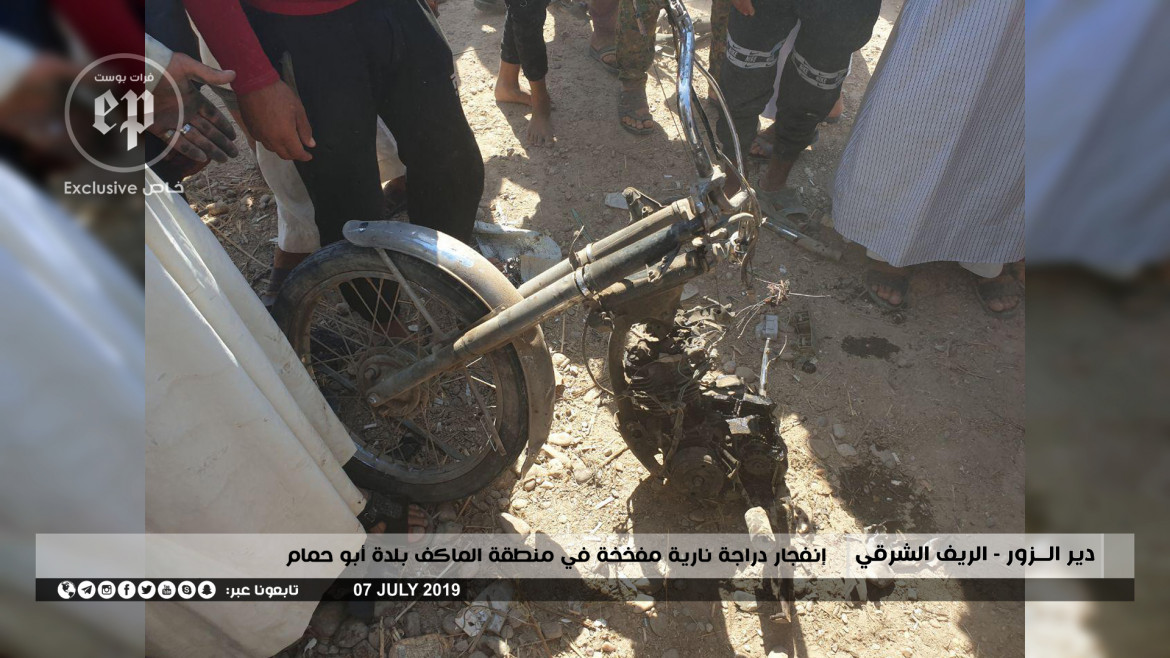 مقتل طفلين وأصيب مدنيون آخرون بجروح، اليوم الأحد، جراء انفجار دراجة نارية مفخخة في ريف دير الزور الشرقي.