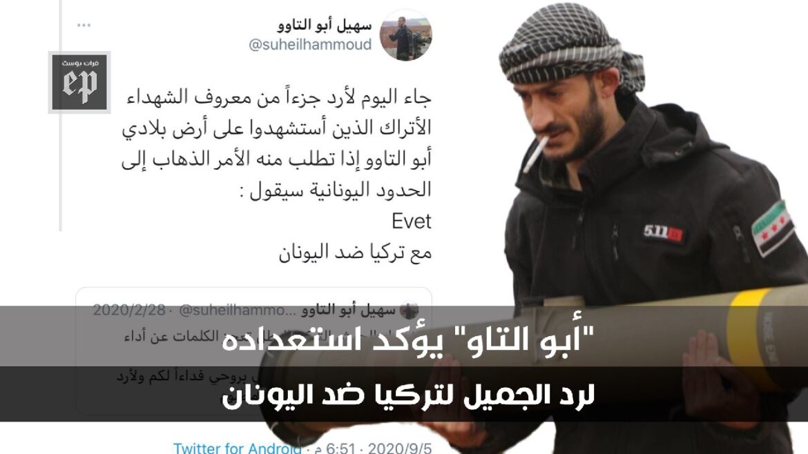 أكد أحد أشهر رماة الصواريخ المضادة للدروع في الشمال السوري “سهيل أبو التاو”، اليوم السبت، استعداده للقتال إلى جانب القوات التركية ضد اليونان في حال تطلب الأمر.
