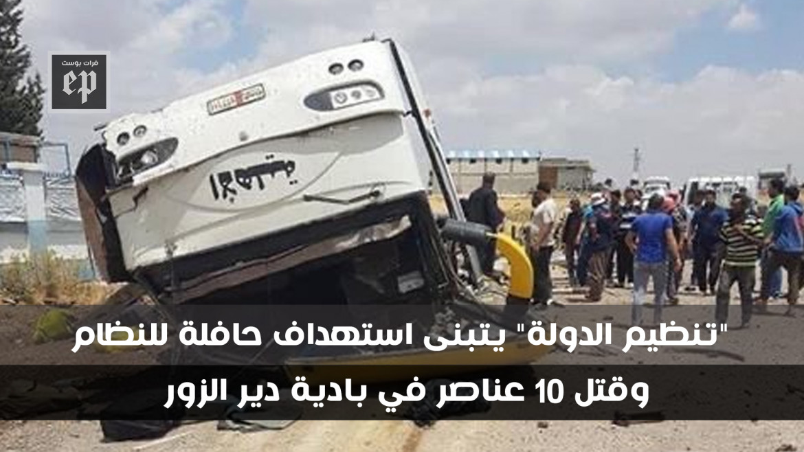 تبنى “تنظيم الدولة” استهداف حافلة لقوات نظام الأسد في بلدة الشولا على طريق دير الزور- دمشق، مؤكداً في بيان نشرته وكالة “أعماق” الناطقة باسمه اليوم الاثنين، أن 10 من “الحرس الجمهوري” قتلوا خلال العملية التي نفذت الخميس الماضي من خلال تفجير عبوة ناسفة كبيرة، تلاها هجوم على الحافلة.