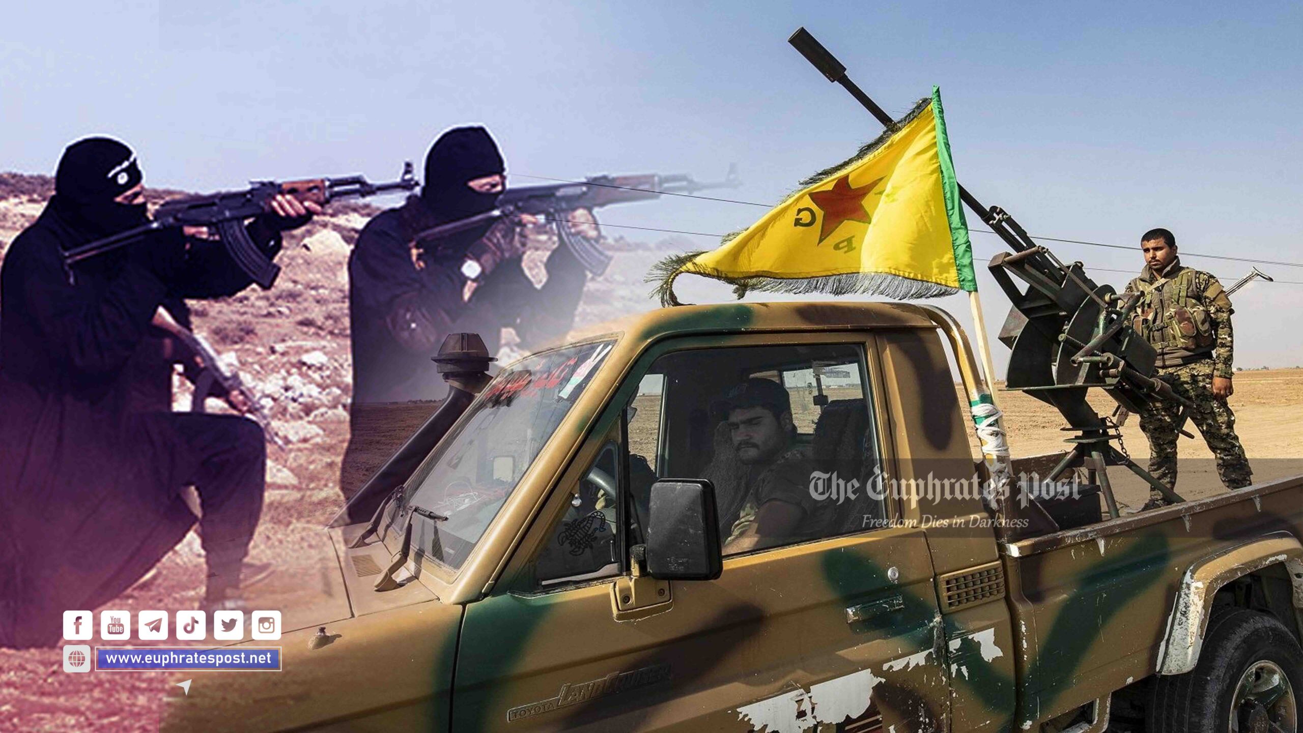 حيث نشرت معرفات تابعة لـ”تنظيم الدولة” بياناً قالت فيه: إن عناصر التنظيم استهدفوا بالأسلحة الرشاسة رتلاً عسكرياً لـ “قسد” في قرية ضمان تمكنوا خلاله من قتل عددٍ من عناصر “قسد” وإعطاب آلية عسكرية.