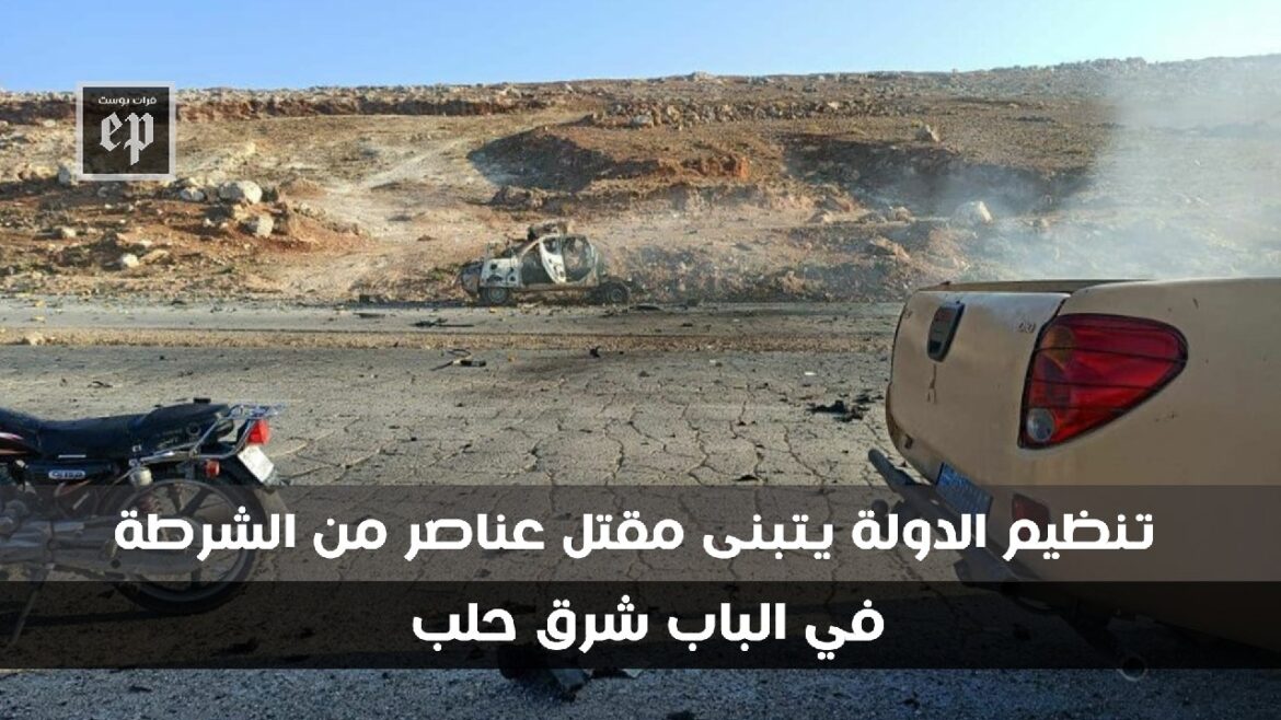 أعلن تنظيم الدولة، السبت، تبنيه مقتل عناصر من “قوى الشرطة والأمن العام الوطني” في مدينة الباب بريف حلب الشرقي.