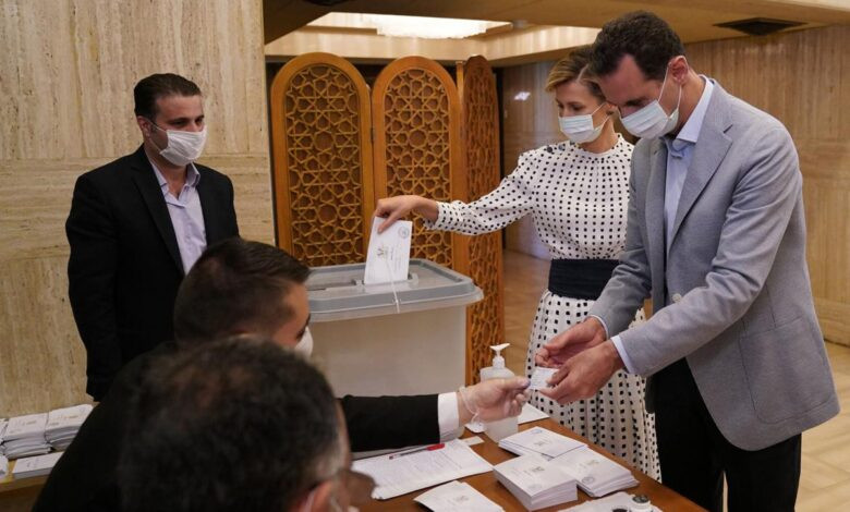 ومرةً أخرى، نعم، كانت المباهجُ جليةً على ملامح سيادة الدكتاتور بشار الأسد، ولا توصف بنشرة أخبار عالمية، ولا حتى ضمن تخطيط طبي لاضطراب عضلة القلب، وهو يقوم بعملية الانتخاب وزوجته البريطانية، حيث لصدى خطواته إيقاعٌ استثنائي وتاريخي وهو يمشي الهوينة مع “ربيبة البذخ” تجاه صندوق الانتخاب التاريخي، وكأنهما ينتخبان نجّاراً ماهراً سيصنع سفينة الإنقاذ التي سوف تحمل على ظهرها الوطن والمواطنيين نحو برّ الأمان والسلام، بعيداً عن طوفان الإمبريالية والاستعمار والمؤامرات القادمة من كوكب زحل!