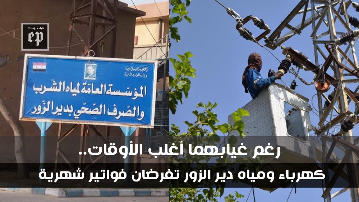 بدأت شركة الكهرباء ومؤسسة المياه في دير الزور بإعادة جباية الأموال واقتطاع فواتير شهرية من المدنيين في مناطق سيطرة نظام الأسد، رغم الوضع الاقتصادي السيء الذي يعيشه سكان المحافظة، وغياب الخدمات الأساسية أغلب الأوقات، لا سيما الكهرباء المياه، وفقدان مواد أساسية وارتفاع سعر المتوفر منها.