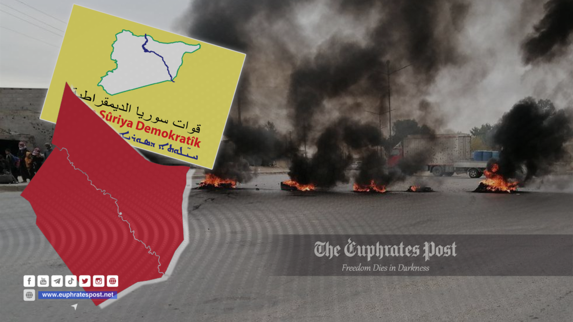 رفضاً لممارسات “قسد” أهالي ريف دير الزور يحتجون ويقطون الطرقات.