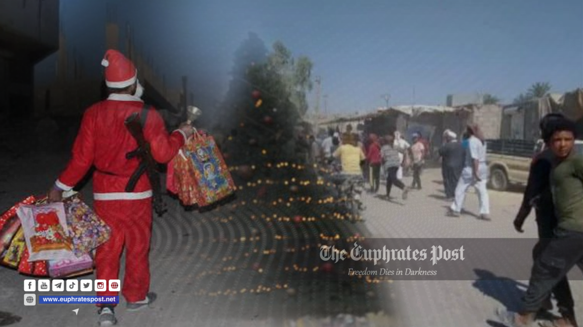 في حين وزع بابا نويل العسكري بعض البسكويت والألعاب البلاستيكية الصغيرة الرخيصة على طالب المدارس الابتدائية الذين أجبروا على الوقوف لساعات من أجل سماع خطب رعاة الحفل التمجيدية لبشار الأسد وشاكرة لروسيا.