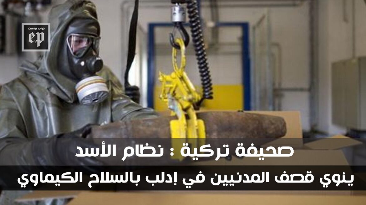 ذكرت صحيفة تركية أن نظام الأسد يعتزم استخدام السلاح الكيميائي ضد المدنيين في مناطق جنوب محافظة إدلب، واتهام تركيا والمعارضة بذلك.
