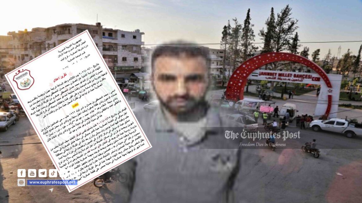 وقالت وسائل محلية: إن المدعو محمد مصطفى ينحدر من مدينة الباب كان يخدم عند النظام وبعد تسريحه عاد إلى مدينة الباب “تهريباً”، منذ خمسة أشهر، ومؤخّراً اعتقلته الشرطة العسكرية، التي أطلقت سراحه لاحقاً مقابل مبلغ مالي قدره 1500 دولار أميركي.