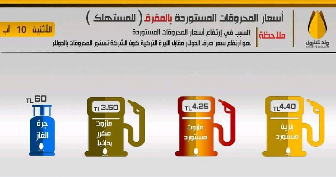 وبررت شركة “وتد” قرار رفعها أسعار المحروقات بارتفاع سعر صرف الدولار الأمريكي مقابل الليرة التركية لكونها تستجر المحروقات من تركيا.