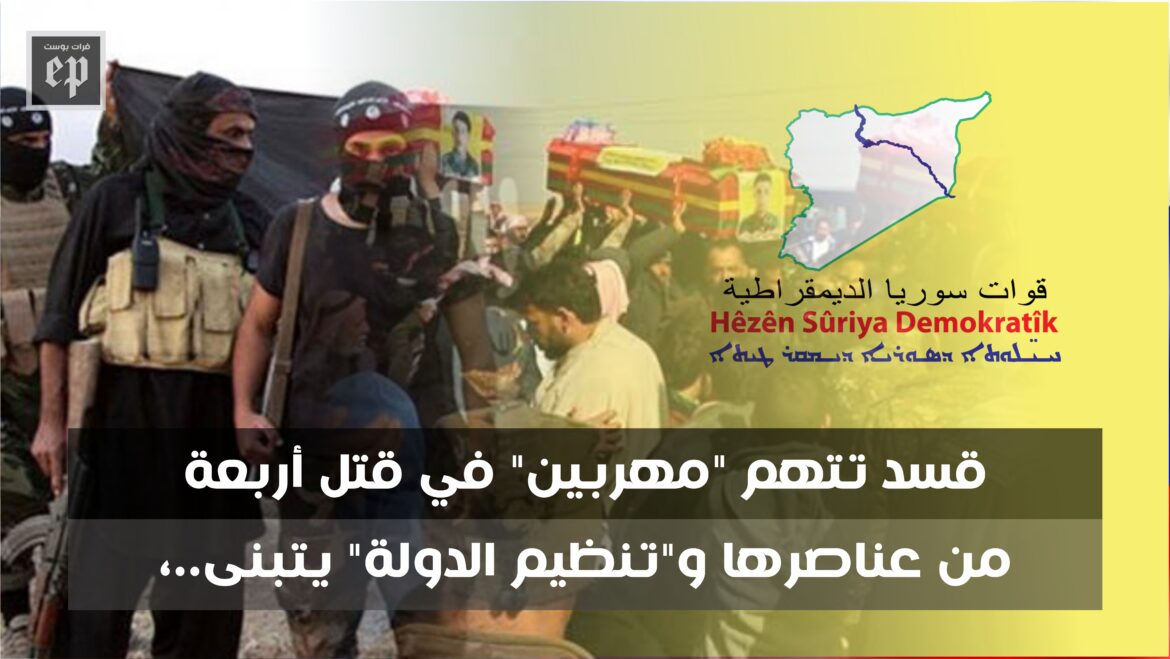 فيما أتهمت “قسد” المهـۦـربين بقتـۦـل أربعة من عناصرها قبل يومين، بعد قيام مجهولين بنصب كمين وإستهداف آليتهم بالقرب من بلدة الكسرة مما أدى إلى مقتل كل من بشار احمد الحسين واسماعيل عكلة الهتش وعبد الجبار المحيسن وراجح الاحمد، وهم من عناصر “الدفاع الذاتي” وينحدرون من قرية حمّار العِلي في ريف ديرالزور الغربي .