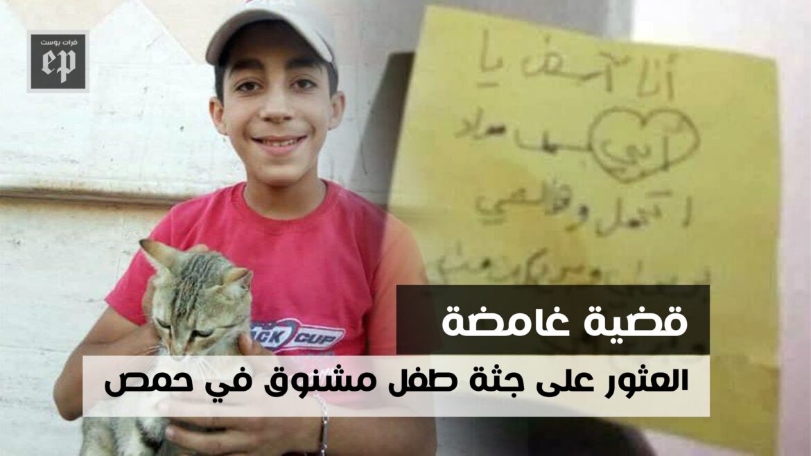 وقالت مصادر خاصة لفرات بوست، إن الطفل “عمر سبيع الخطاب” (15 عاما) عثرت عائلته على جثته مشنوقا في منزل لهم (قيد الإنشاء) بحي “باب دريب” في حمص.