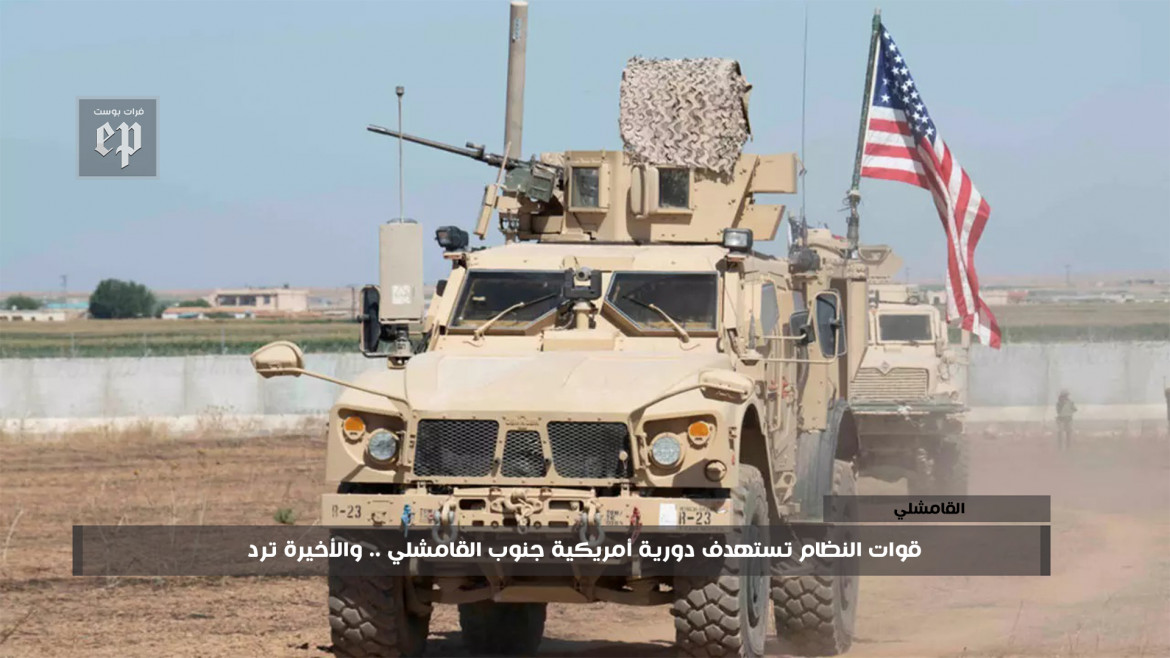 استهدفت قوات النظام بالأسلحة الرشاشة، صباح اليوم الاثنين، دورية للقوات الأمريكية أثناء مرورها من حاجز لهم جنوب مدينة القامشلي بريف الحسكة.