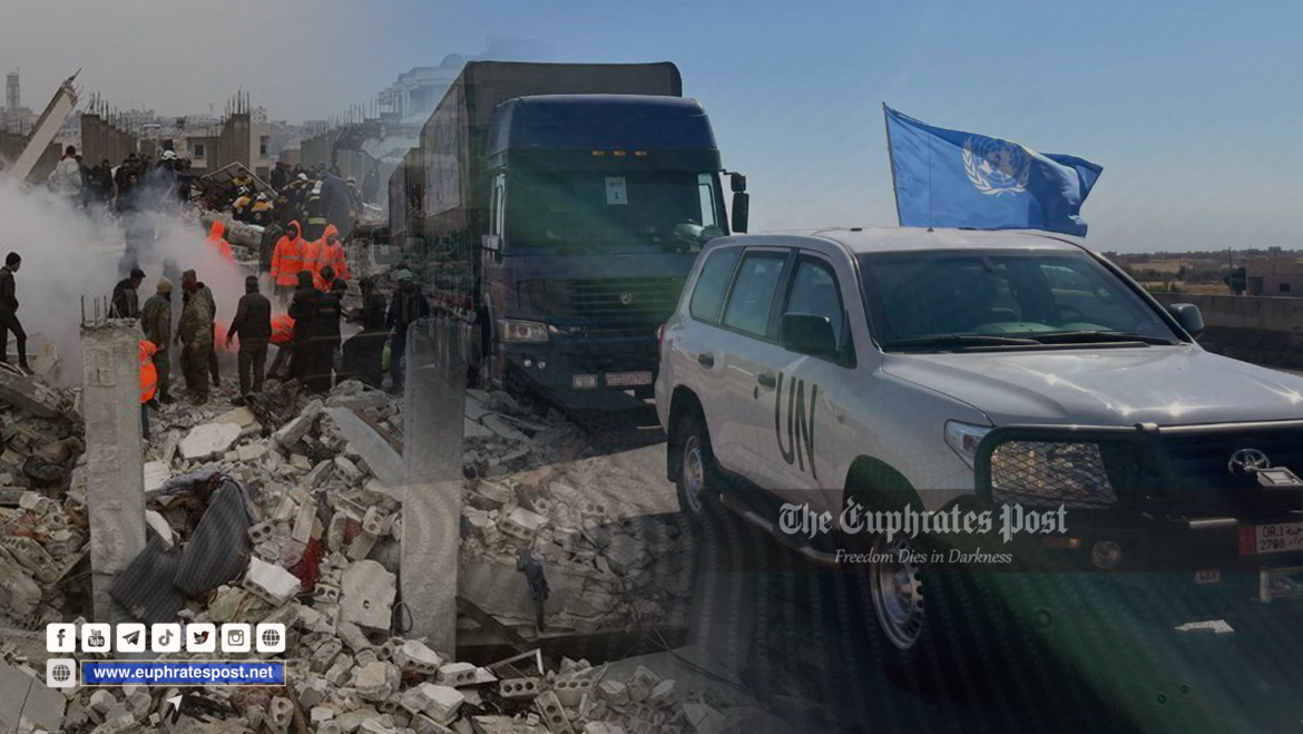 في أعقاب الزلزال، أصبح تسليم المساعدات إلى المناطق المتضررة من الزلزال معركة سياسية، حيث ضغط معارضو الأسد والعديد من منظمات الإغاثة على الأمم المتحدة لإرسال المزيد من شحنات المساعدات إلى شمال سوريا عن طريق تركيا، في حين ضغطت حكومة بشار الأسد وحليفتها، روسيا، من أجل إرسال المساعدات عبر دمشق.