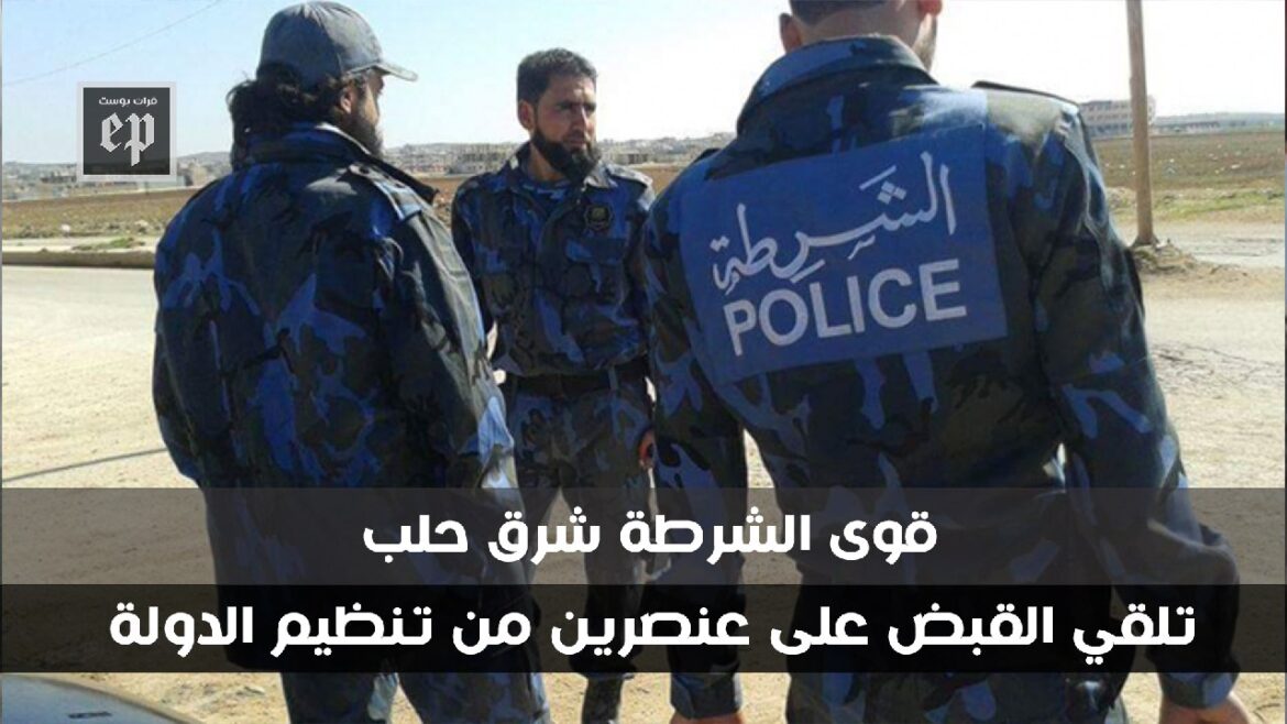 أعلنت قوى الشرطة والأمن العام الوطني في مدينة الباب بريف حلب الشرقي، اليوم الثلاثاء، عن إلقاء القبض على عنصرين من تنظيم الدولة.