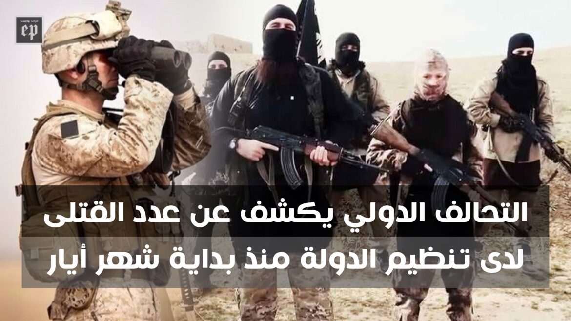 كشف التحالف الدولي ضد تنظيم الدولة، عن عدد قتلى التنظيم منذ بداية شهر أيار الحالي في سوريا والعراق.
