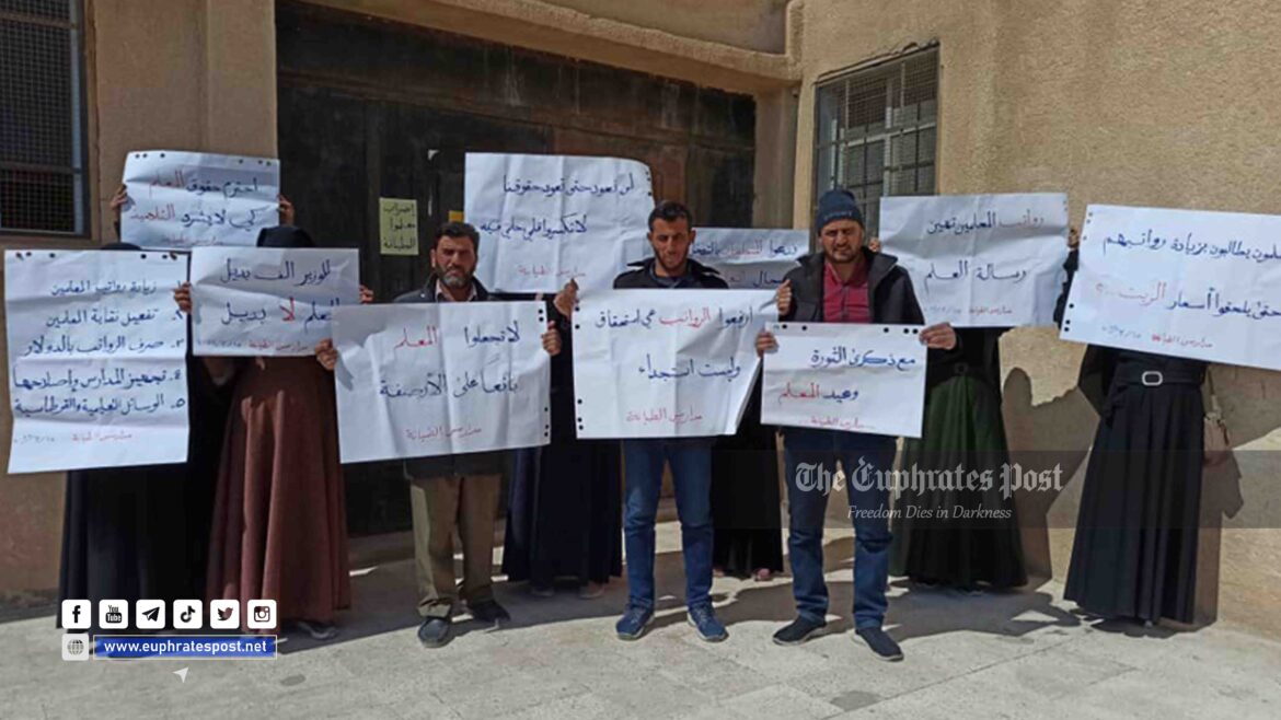 أعلن معلمو الريف الشرقي والريف الغربي عن إضراب عام وإغلاق كامل لجميع المدارس يبدأ يوم غد الأحد المصادف 20 مارس، كما أعلنوا عن مجموعةٍ من المطالب المتعلقة بواقف القطاع التعليمي في عموم مناطق نفوذ قسد شرقي البلاد.