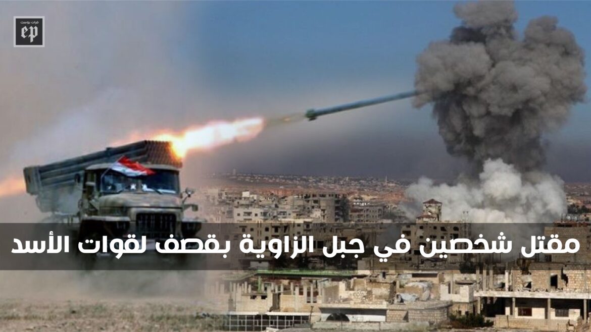 وقالت مصادر محلية إن شخصين قتلا، إثر القصف المدفعي لقوات الأسد، على بلدة بلشون في جبل الزاوية.