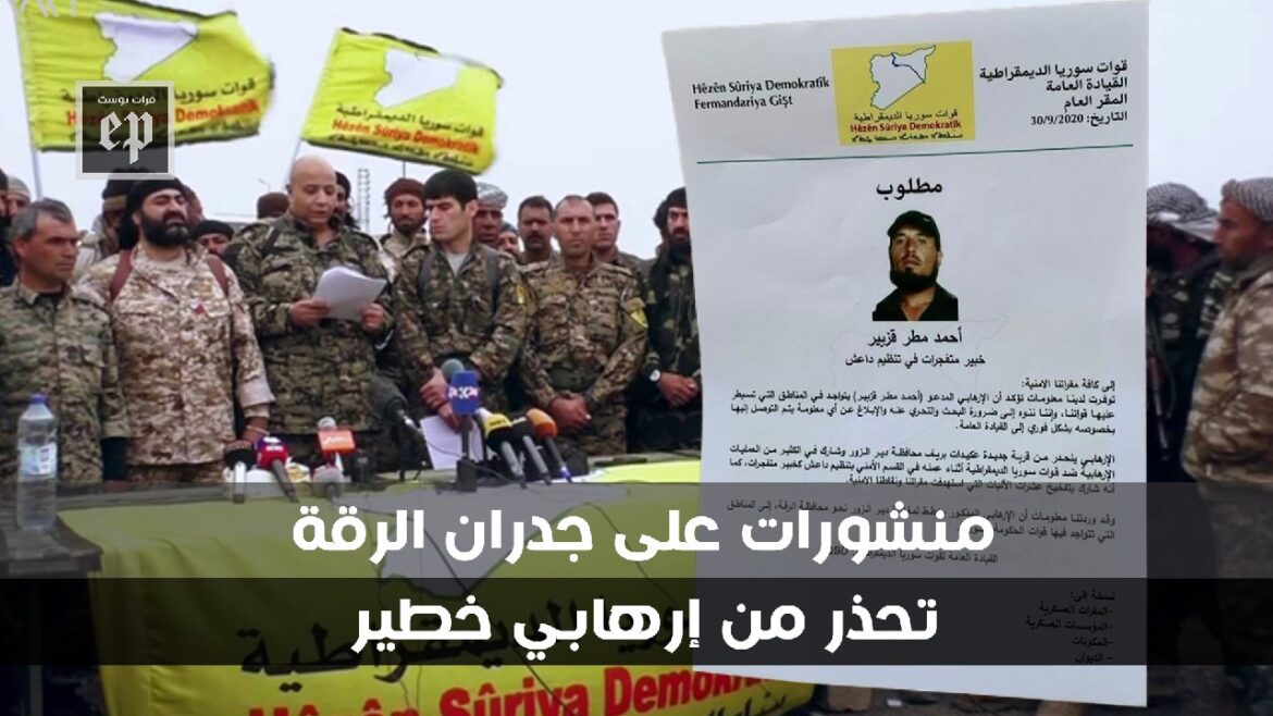 وزعت قسد منشورات تحذيرية من الإرهابي المدعو “أحمد مطر قزبير” المنتمي إلى تنظيم الدولة، ودعت الجميع إلى ضرورة الإبلاغ عن أي معلومات تؤدي لاعتقاله.