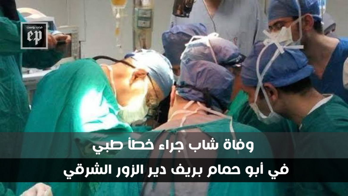 توفي الشاب في بلدة “أبو حمام” بقرية أبو حمام شرق دير الزور، الثلاثاء 24 تشرين الثاني، جراء خطأ طبي أثناء عمل جراحي.