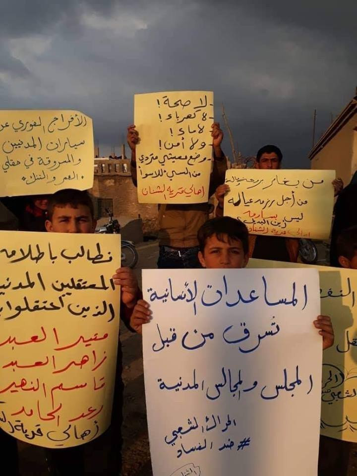 The slogans echoed by those who participated in the demonstrations, from several towns in the rural areas of the province, the phenomenon of corruption within the local councils, and security chaos, and the spread of theft and kidnappings in order to obtain ransom, accusing the Kurdish “protection units” to cover up criminals and protect them.
